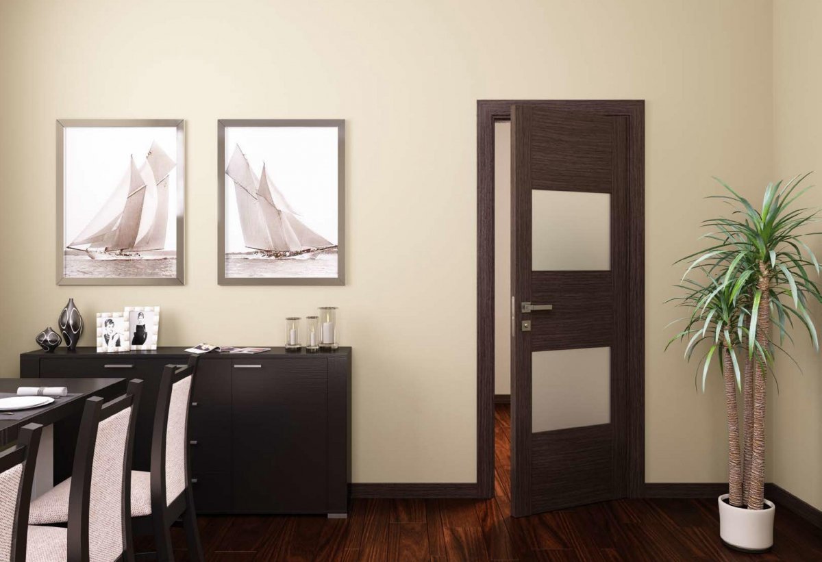 Устанавливается в современных стилях интерьера, где необходимо подчеркнуть дизайн деревом. В данном случае рекомендуется выбирать двери в тёмных тонах с матовых покрытием – это имитация венге, махагони или дуба. Такие полотна смотрятся изысканно, а благодаря лаковому слою легко моются без разводов и пятен.